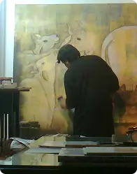 His world is one of depth, devotion, and gentleness. His canvases invite viewers to slow down, to reflect, to feel. To find beauty not only in the divine, but also in the everyday—and sometimes, in the quiet gaze of a cow.